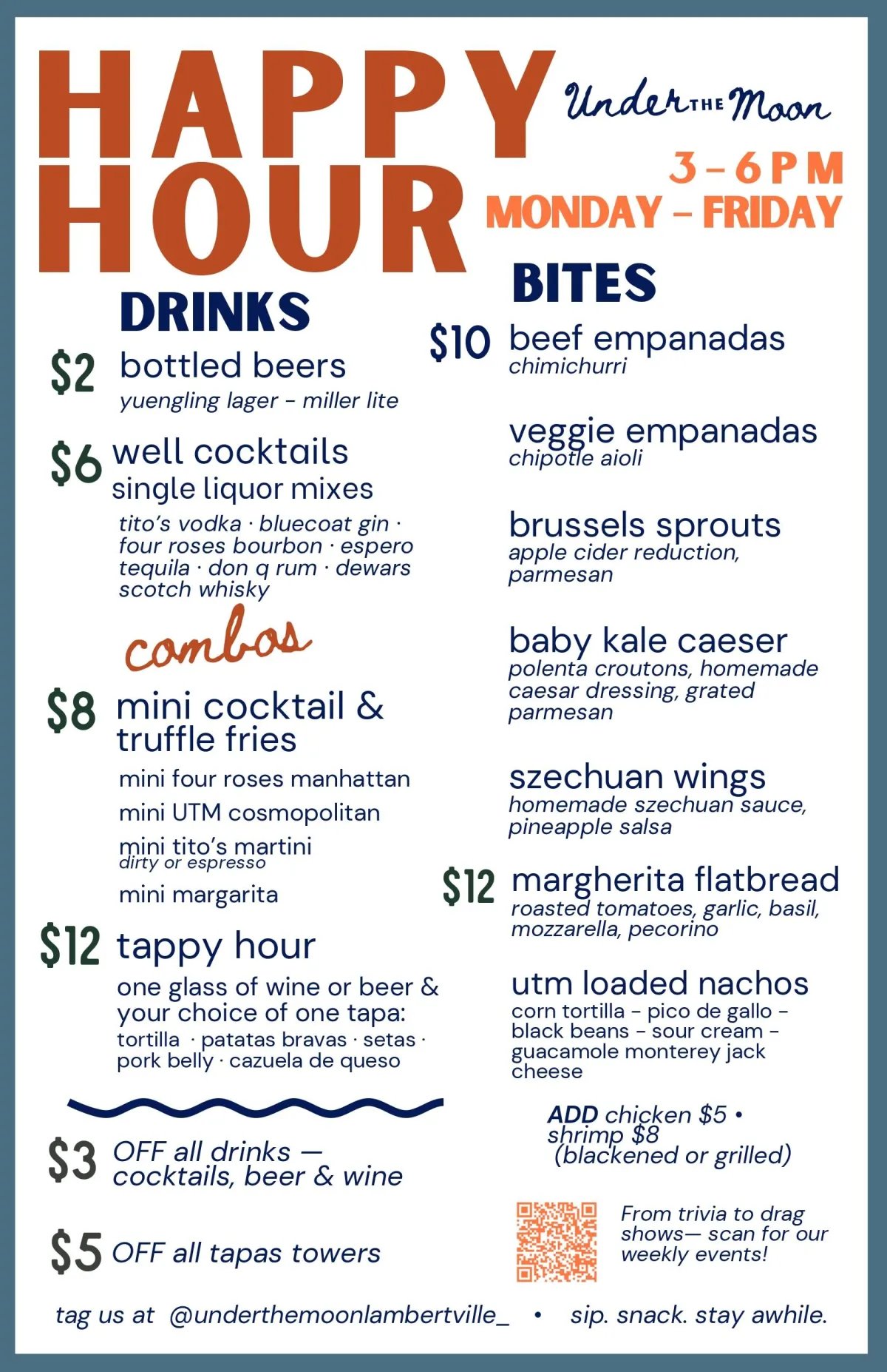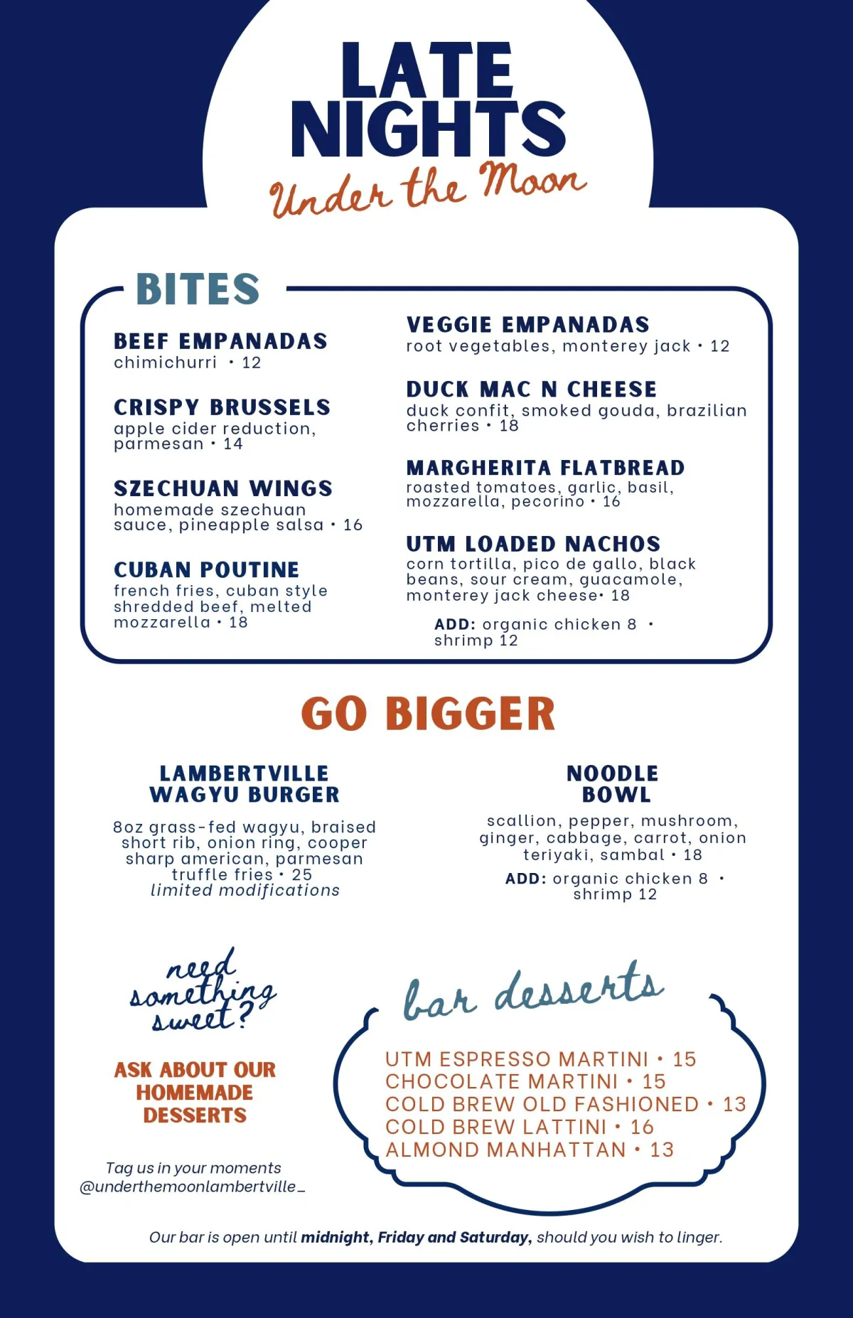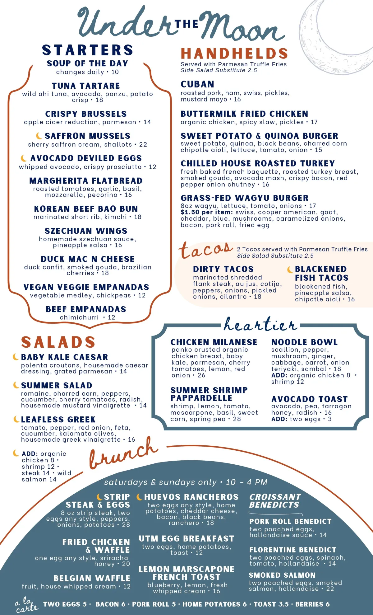 Tried out Under the Moon for the first time and was blown away! They are known for their tapas menu and great cocktails- and I can't lie when I say every single thing I got was SO good. The Mac and cheese was amazing and I highly recommend getting the shrimp and Spicy meatballs from the tapas menu.